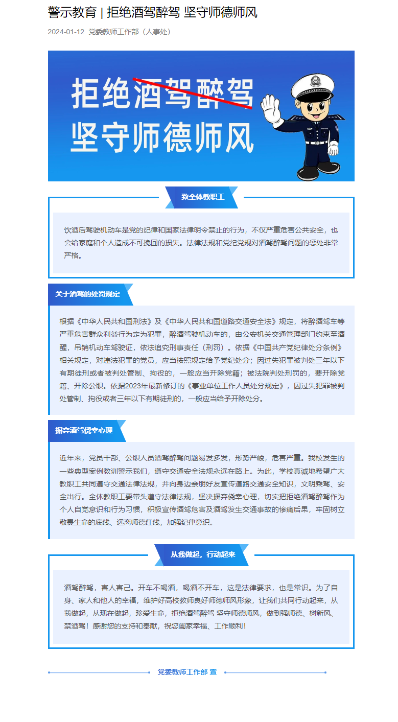 警示教育 | 拒绝酒驾醉驾 坚守师德师风